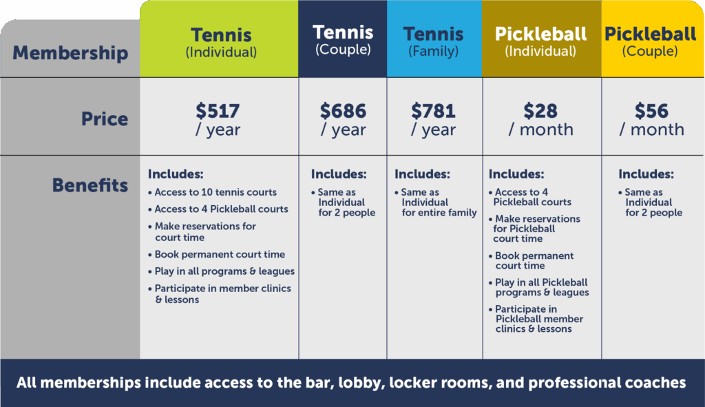 - Access to 4 pickleball courts & all pickleball membership benefits
